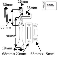 Tear Drop style Casement Fastener, supplied with a choice of fixing plates, a rebated mortice plate and face fix hook plate.